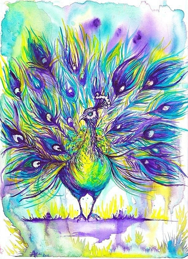 A4 Peacock print, watercolour, but has original hand made amendments to every print, adding to colour longevity and tonal quality.